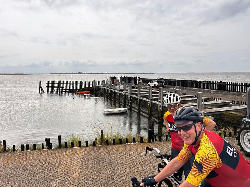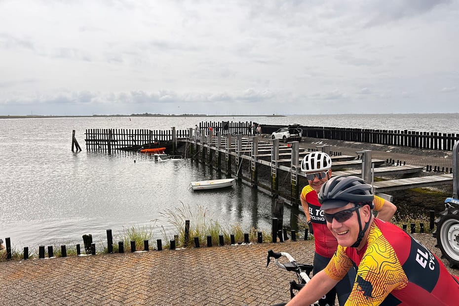 Aan het einde van rondje eiland Tholen was er nog een spannend moment. De lokale bevolking stonden allemaal op de dieke, en er werd heen en weer gerend met slangen. Er was in de haven van Strijenham een gevalletje Titanic. Het was pompen of verzuipen. We hergroepeerde met Lisette en konden weer door. We besloten om rustig terug te fietsen naar Bergen op Zoom.