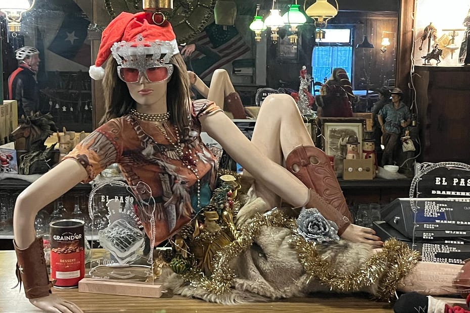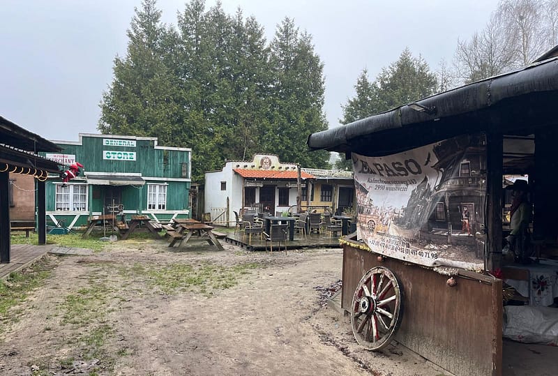 Leo had een GPX van de route gemaakt en die iedereen doorgestuurd. Ik was best benieuwd hoe dat zou gaan met gps in het bos maar dat ging boven (mijn) verwachting goed. De navigatie deed het prima en alle paden waren gewoon goed zichtbaar. Het eerste stuk door het bos heeft vooral Sebas op professionele wijze als spoorzoeker gefungeerd. Later nam ik het veelal over en ik vond het soms best lastig. Op je nav kijken en de bomen en boomwortels ontwijken gaat niet altijd samen maar op een enkel “ho, hier moesten we naar links (of rechts) na, ging het ok. De heenweg ging via het bos bij Lievensberg en via Huijbergen richting Kalmthout. De route was mooi via bekende stukken zoals de nootjesberg maar zeker voor mij ook stukken waarvan ik dacht ‘goh, leuk dat ik hier ook eens ben’. Het laatste stuk van de heenweg was best wel veel verhard met veel best koude wind. Het was een graadje of twee en de gevoelstemperatuur lag net onder het vriespunt. Uiteindelijk was daar El Paso. Ik herkende het niet meteen want het enige dat we zagen aan de andere kant van een hek was voertuigen die helemaal onder de aanslag zaten, hoop rotzooi eromheen en verder wat gebouwen met oude vervallen gevels. Dat bleek het toch te zijn. In het begin van het park (nou ja… park) zag het er net iets beter uit. Maar het was wel hartstikke gesloten dus dachten we: ‘terug dan maar”, maar Leo zou Leo niet zijn als hij niet rond ging rijden en op ramen kloppen en voor de poort staan. Ik weet niet of dat de reden was maar uiteindelijk kwam er toch iemand naar buiten. Dat bleek de schoonzoon van de eigenaren te zijn. De eigenaren waren dus de schoonouders van de schoonzoon en die waren bezig met het renoveren van El Paso. We mochten van de schoonzoon even binnenkijken en dat was best leuk. De kachels waren aan omdat iedere zondag vanaf een uur of 3 de tent volloopt, er live muziek is en er gelinedancet word. Het zag er binnen best wel gezellig uit. Echt iets voor de Toro’s (we zoeken nog een BOB).