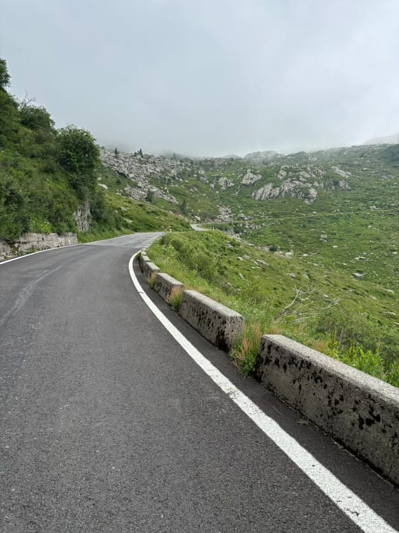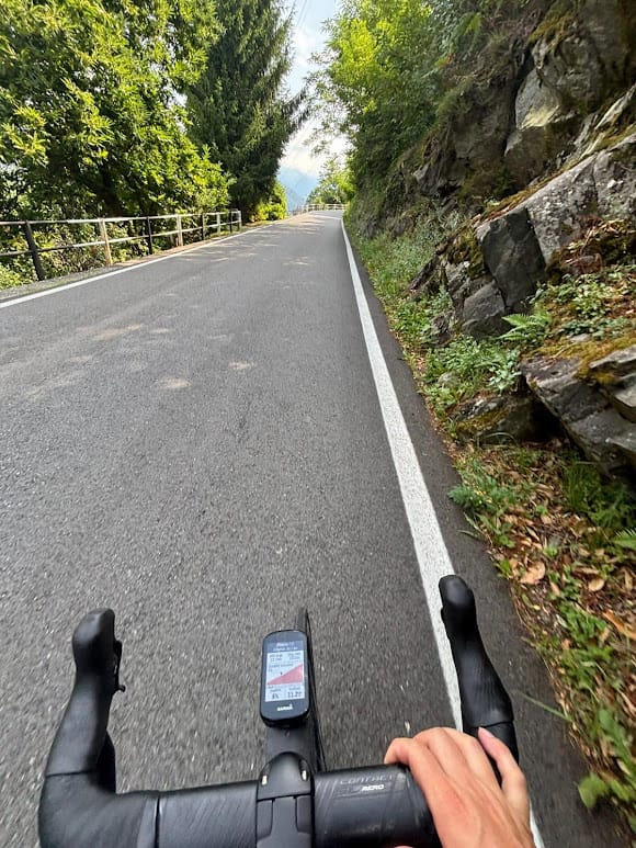 We reden dwars door Chiavenna over de toeristenkoppen naar de voet van de klim. Een hele mooie klim en eens wat anders dan anders. Over smalle paden, langs mooie beekjes en over pittoreske bruggetjes…het was het Zwitserleven zoals bedoeld.