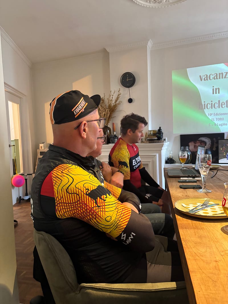 Een avondje vergaderen en speuren naar huizen onder genot van wat biertjes en we konden onze presentatie voorbereiden. Op zondag 4 mei hadden we een fietsritje met na afloop een presentatie van jewelste. Helemaal in de Italiaanse sferen werd het parcours gepresenteerd en die loog er niet om! Mooie klimmen, maar zeker ook pittige. We hadden een mooi gevarieerd parcours voor ons peloton bedacht en de animo om mee te gaan was gelukkig groot.