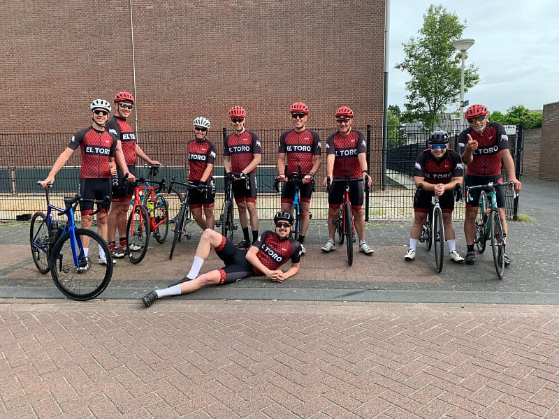 Daar staan ze dan. 9 Torro’s klaar voor een ritje onder leiding van wegkapitein Kevin! Met een goed gevulde maag vol worstenbroodjes en een koffiesmaak in de mond stapten we op de fiets. Wind kwam uit het westen, reden naar het oosten, lekker begin van de dag!